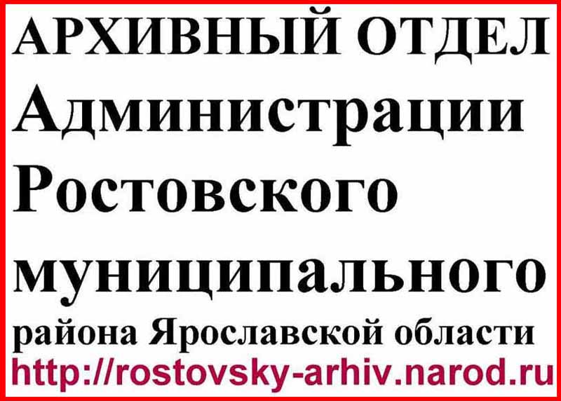 КООРДИНАТЫ АРХИВОВ ДЛЯ ПОИСКА ПРЕДКОВ (и РОДСТВЕННИКОВ ПО ИХ ЛИНИЯМ) - РОСТОВСКИЙ АРХИВ в Контакте> http://vkontakte.ru/club20406412 Почтовый адрес Ростовского филиала ГАЯО: 152151, Ярославская область, г. Ростов, Советская площадь, д. 8, тел. (48536) 6-35-56, тел. стола справок: 8 (48536) 6-16-52. Время работы cтола справок - понедельник, вторник, среда, четверг 8.30 – 16.30 (обед 12.00 – 13.00). Читальный зал - понедельник, среда, четверг 8.30 – 16.30 (обед 12.00 – 13.00). Директор филиала ГАЯО в городе Ростове - Павлова Наталья Владиславовна тел.(48536) 6-35-56. Почтовый адрес АРХИВНОГО ОТДЕЛА Администрации Ростовского муниципального района Ярославской области: 152155, Ярославская область, г. Ростов, ул. Ленинская, д. 58-а Начальник отдела - Передернина Галина Викторовна, тел. 8 (48536) 7-75-09. Заместитель начальника отдела - Шаломицкая Любовь Михайловна, тел: 8 (48536) 7-75-09. Главный специалист - Сальникова Светлана Анатольевна, тел: 8 (48536) 7-75-09: