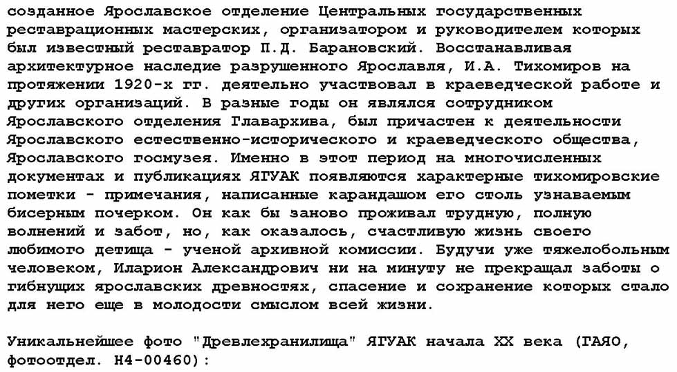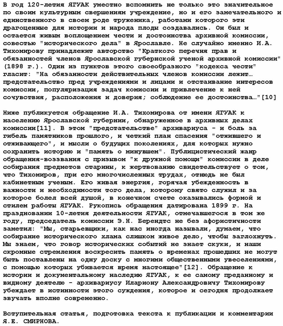 "…СОХРАНИТЬ ПАМЯТЬ о МИНУВШЕМ…" Архивариус ИЛАРИОН АЛЕКСАНДРОВИЧ ТИХОМИРОВ о назначении и деятельности ЯГУАК. Опубликовано в журнале "Отечественные архивы" № 5 за 2009 год (взято с адреса> http://www.rusarchives.ru/publication/yagyak.shtml ) - окончание: